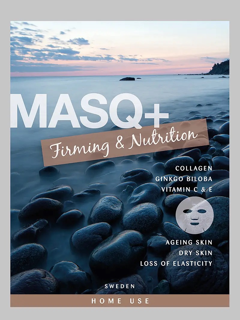 MASQ+ Firming & Nutrition är fulladdad med aktiva ingredienser, bl.a. fuktgivande collagen, ginkgo biloba och antioxidanterna C- och E-vitamin. Regelbunden användning av MASQ+, 2–3 gånger i veckan, håller din hy återfuktad, ger en fin lyster och därigenom ett ungdomligare utseende.