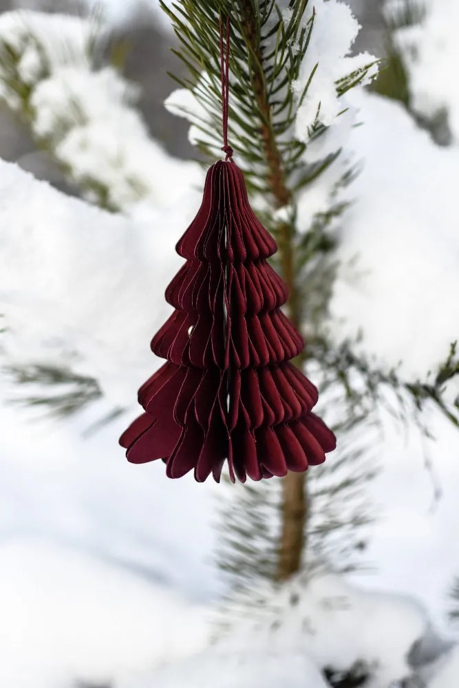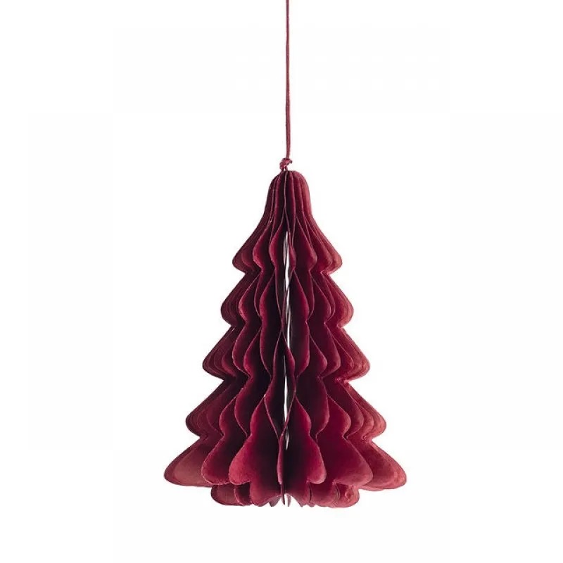 Dekoration i papper. Skapa stämningsfull julkänsla med denna fina dekorationsgran i röd. Kombineras snyggt med våra andra juldekorationer i sortimentet, finns även i beige och grönt i andra storlekar.